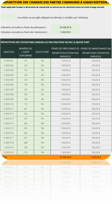 Ces informations constituent la base de l’étude du fonds de prévoyance, permettant d’établir des projections financières précises et conformes à la Loi 16. -
